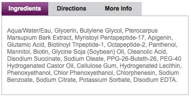 I decided to use this as an example for how you can figure these things out. To begin with, I checked to see whether the product was on EWG’s SkinDeep Cosmetics Database (http://www.ewg.org/skindeep). It wasn’t, drat.