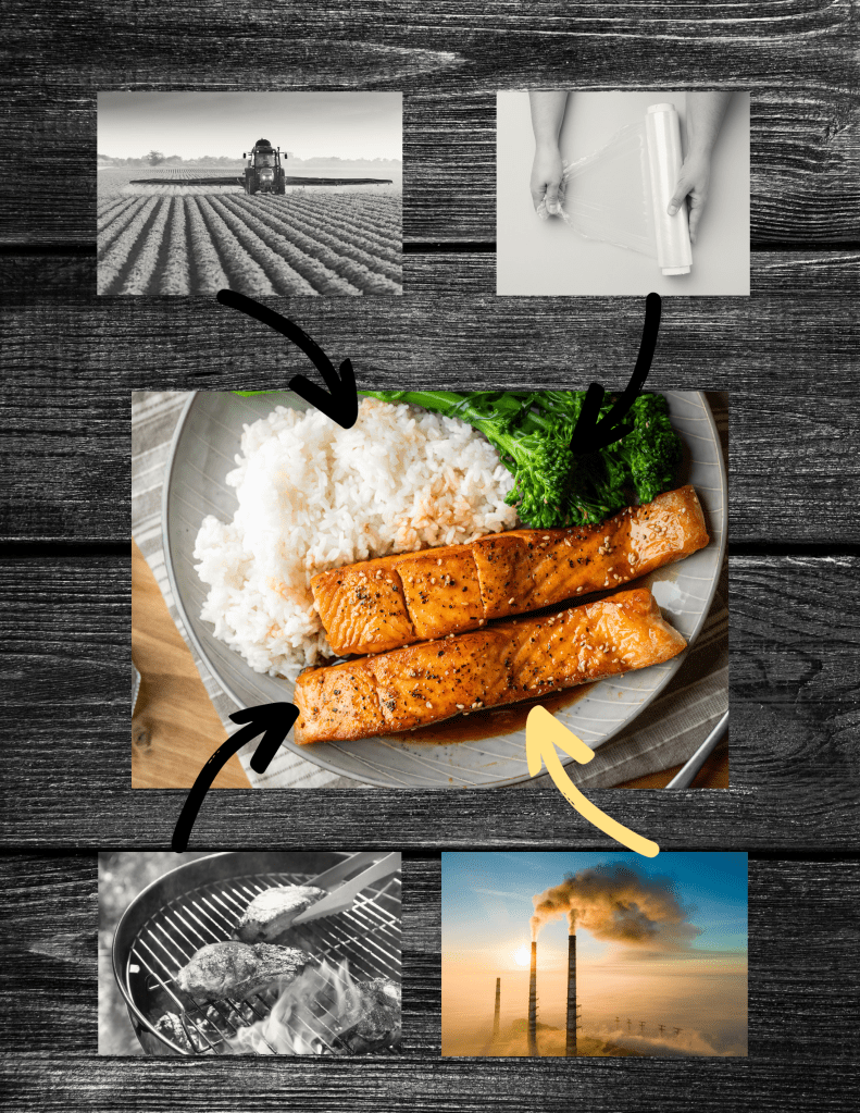 Because food is not grown in a vacuum (except on the Space Station), fruits, veggies, chickens, cattle, and fish are exposed to environmental contamination during their life spans. Even controlled or sheltered conditions, like a greenhouse, are likely not free of environmental contaminants present in the building or soil and brought in by irrigation water. As discussed in the prior post, toxic chemicals can be transported to our food through air currents and rain, in waterways like rivers, groundwater, or oceans, and may be present in soils and river sediments where crops are grown and animals graze or swim. However, there are some things you can do to reduce your exposure to environmental contaminants – check out the “What you can do” section at the bottom of this post.